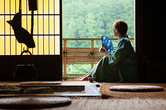 大きな窓からは祖谷の雄大な自然を望めます。